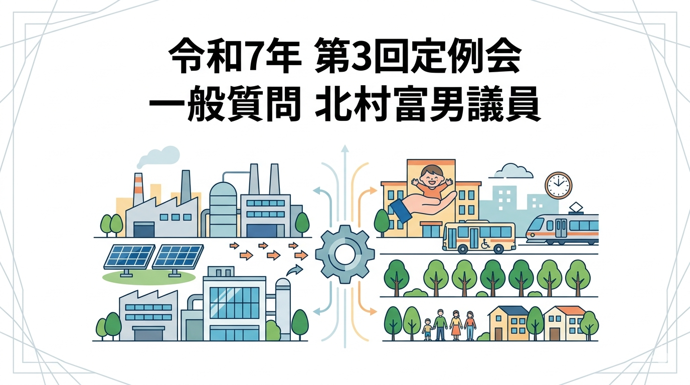 海津市の令和7年第3回定例会の一般質問において、北村富男議員は「企業誘致の取組と今後の戦略」について質問した。